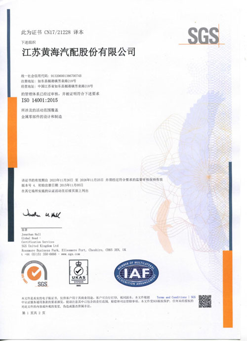 江蘇黃海汽配股份有限公司